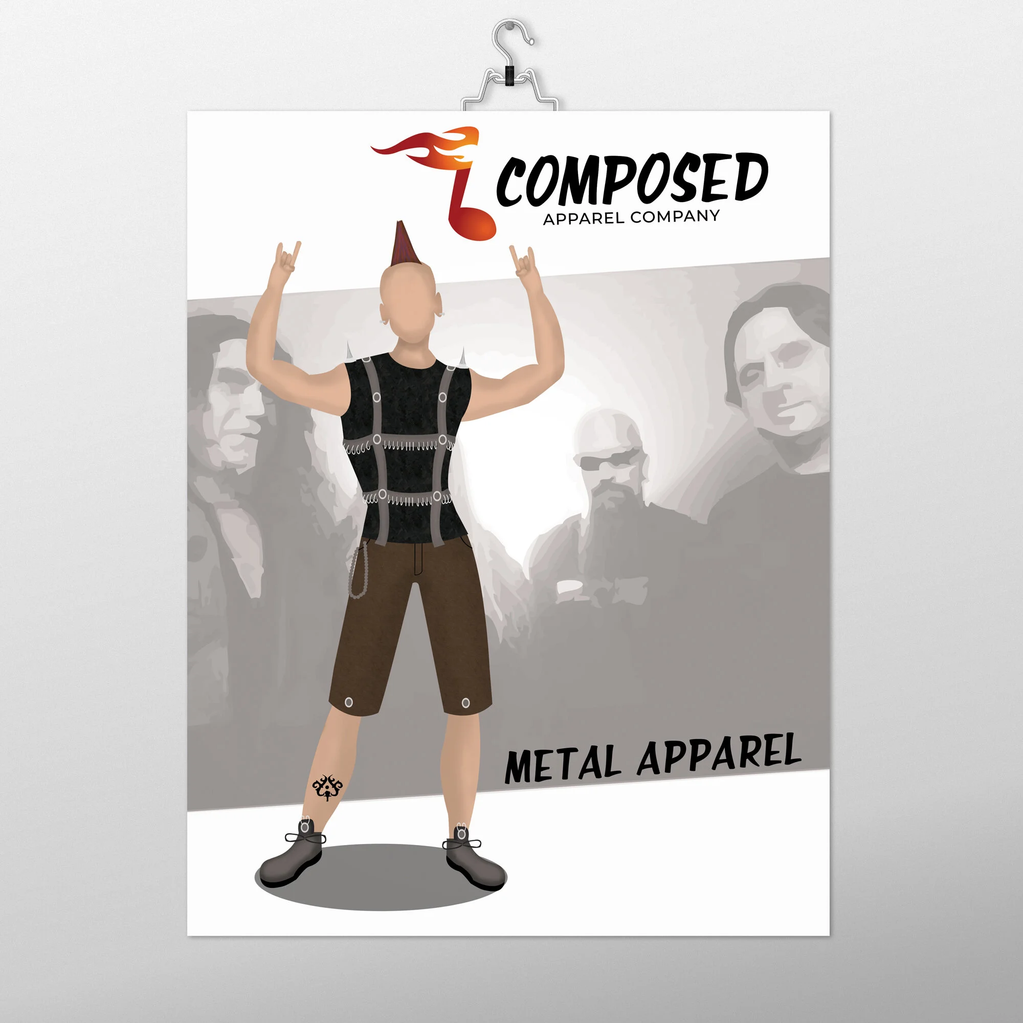 Composed Apparel represents music themed style clothing. Various clothing options from indie, rock and rap music. I created these poster designs to convey the wide variety of clothing options for your specific needs and style. Depending on the genre of music that you typically listen to, there is a clothing style to match.