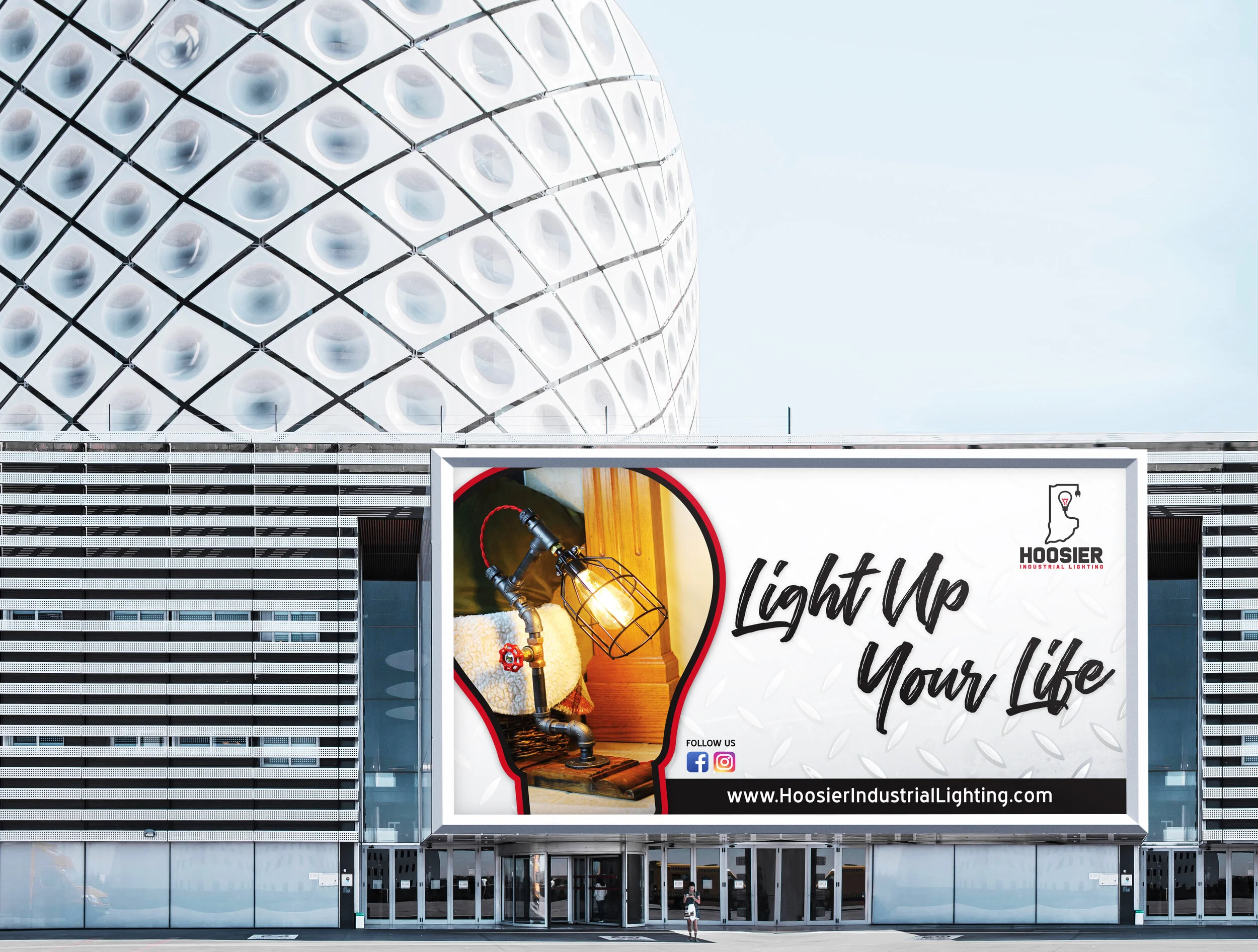 Hoosier Industrial Lighting started as just a fun filled hobby. It was something to keep my mind busy by building unique pipe lamps. It has since turned into a creative project filled with passion and creativity. These aren’t just any plain-Jane lamps. They’re custom and unique to fit the style of your space. I developed a logo design to put a face to Hoosier Industrial Lighting as well as some promotional pieces such as a billboard, postcard, hang tags and business card design.